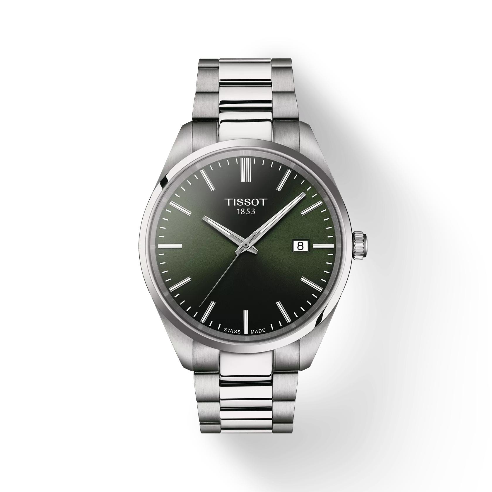 Il Best seller Tissot PR 100 rimane fedele al suo nome: preciso ("P"), robusto ("R") e resistente all'acqua fino a una pressione di 10 bar (100 m).Realizzato in acciaio inossidabile 316L di alta qualità, questo nuovo design presenta un quadrante ampio grazie alla lunetta stretta, per un look elegante e raffinato. L'ora è indicata da lancette rivestite in SuperLuminova®, per una lettura precisa anche al buio. bracciale e cinturino con sistema di sgancio rapidoInformazioni sull'orologioSKUT1504101109100CollezioneT-ClassicPeso (g)122,00Garanzia2 anni garanziaPaese di produzioneCHCassa e vetroLunghezza40,00Larghezza40,00Spessore8,25Anse20.00ImpermeabilitàImpermeabile fino a 10 bar (100 metri/330 piedi)Forma della cassaRotondoMateriale della cassaCassa in acciaio inossidabile 316LVetroVetro zaffiro antigraffioMovimentoEnergiaQuartz EOLMovimentoSvizzero, al quarzoBatteriaBatteria tipo Renata 371FunzioniEOL (indicatore fine carica batteria)Calibro11 1/2'''Calibro Diametro (mm)25,6Certificato COSCNoQuadranteColore del quadranteVerdeIndiciIndiciMateriale luminescente sulle lancetteSuper-LumiNova ®CinturinoRiferimento del cinturino/catenaT605049118Dettagli del cinturinoAcciaio inossidabileColore cinturinoGrigioFibbiaChiusura a farfalla con pulsanti, Bracciale intercambiabile a sgancio rapidoopzioni braccialeBraccialetto intercambiabile a sgancio rapidoreferenza magliaT613049257