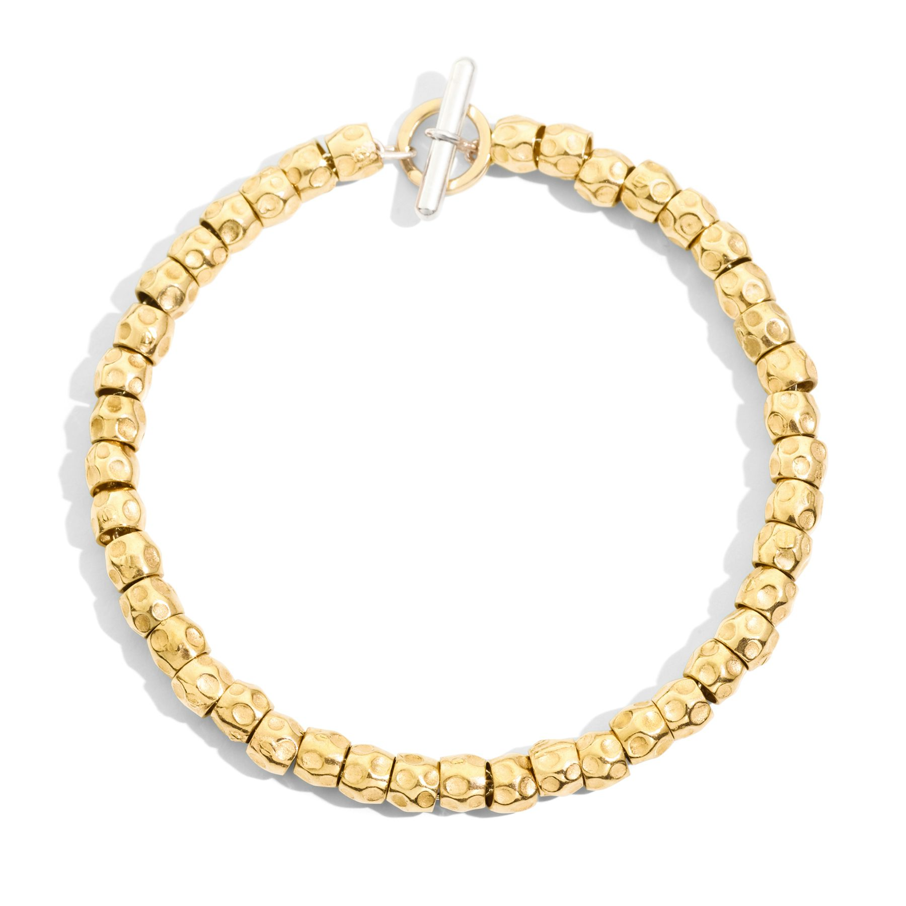 Bracciale granelli in oro giallo 18k, con catena in argento 925 e anello brisè in oro giallo 18k.