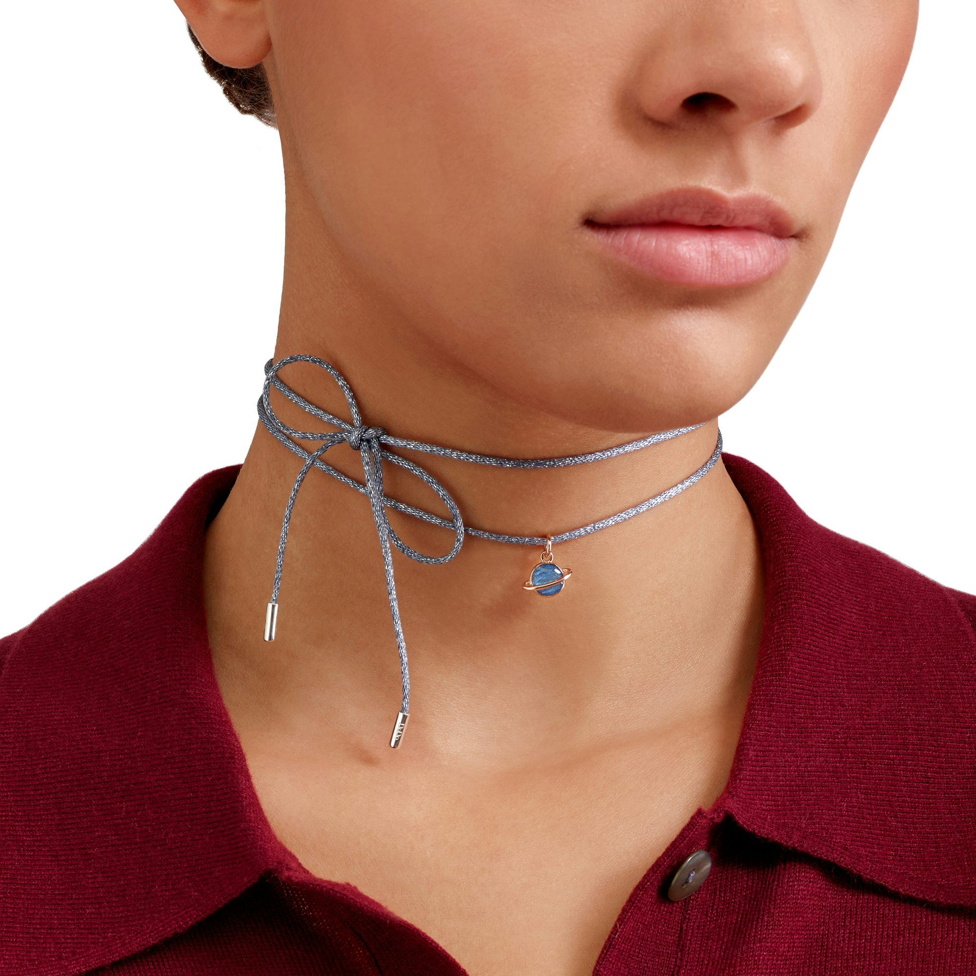 Cordini in poliestere azzurro e finalini in argento 925.