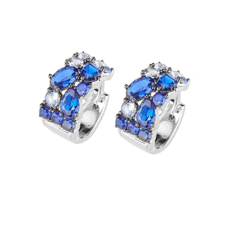 Orecchini da donna di Sovrani della collezione Luce. orecchini in argento 925 con zirconi zaffiro. La chiusura è gancio. Lunghezza: 1,5 cm.. La referenza è J11033
