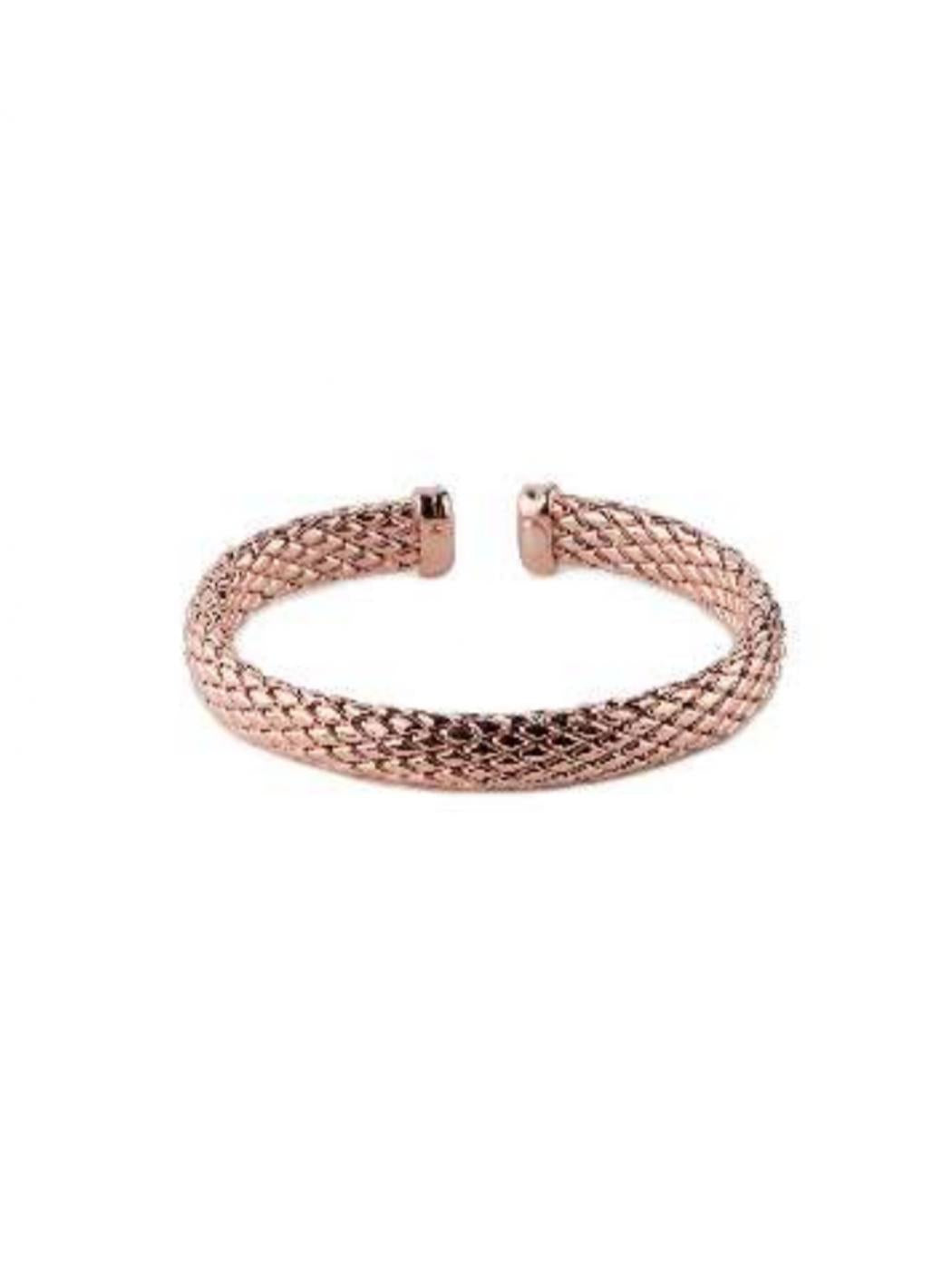 Bracciale rigido da donna in bronzo con finitura rosè. Diametro: 7cm.