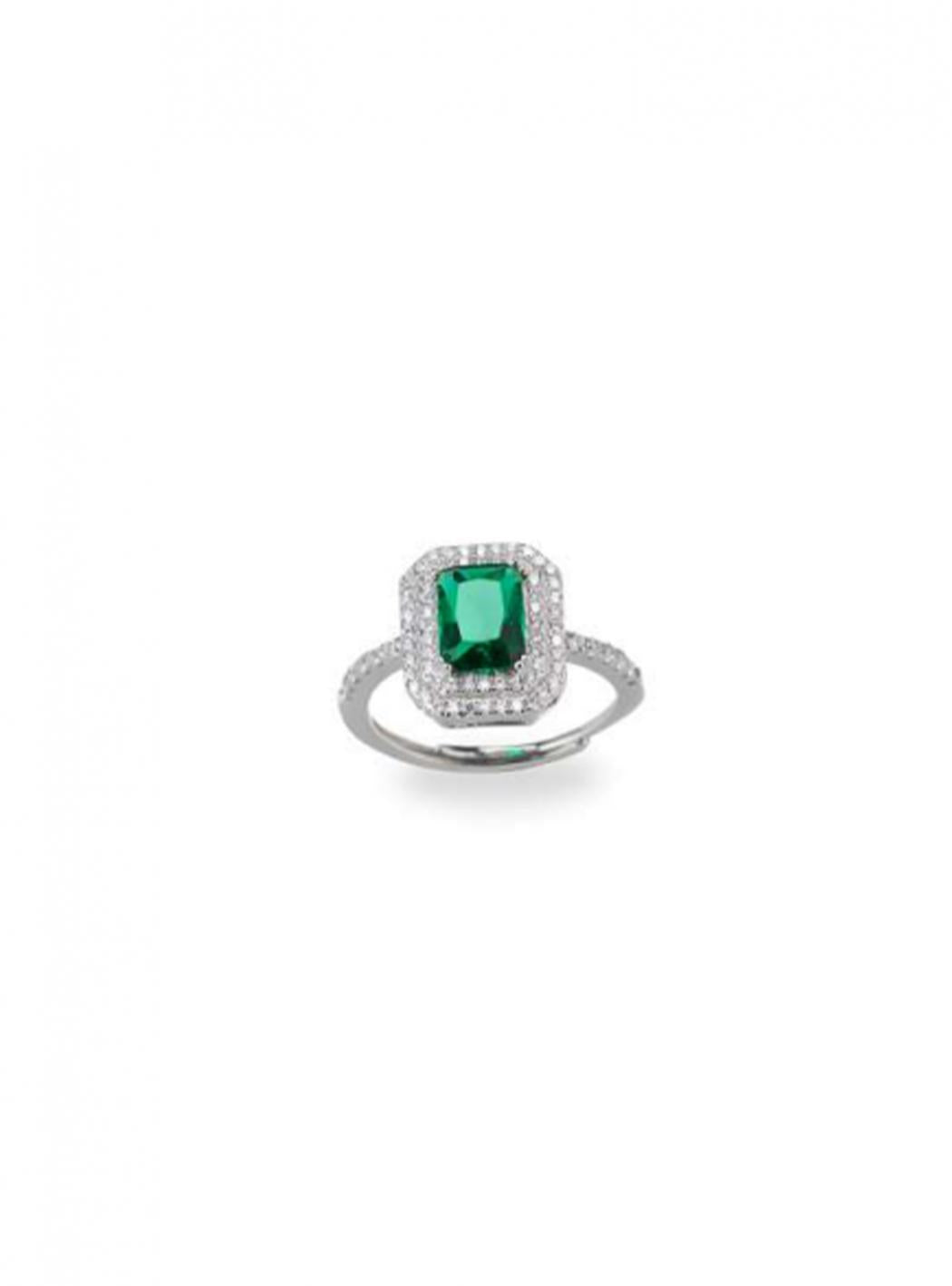 Anello da donna in argento 925 con pietre cubic zirconia e zircone smeraldo. Misura 16.