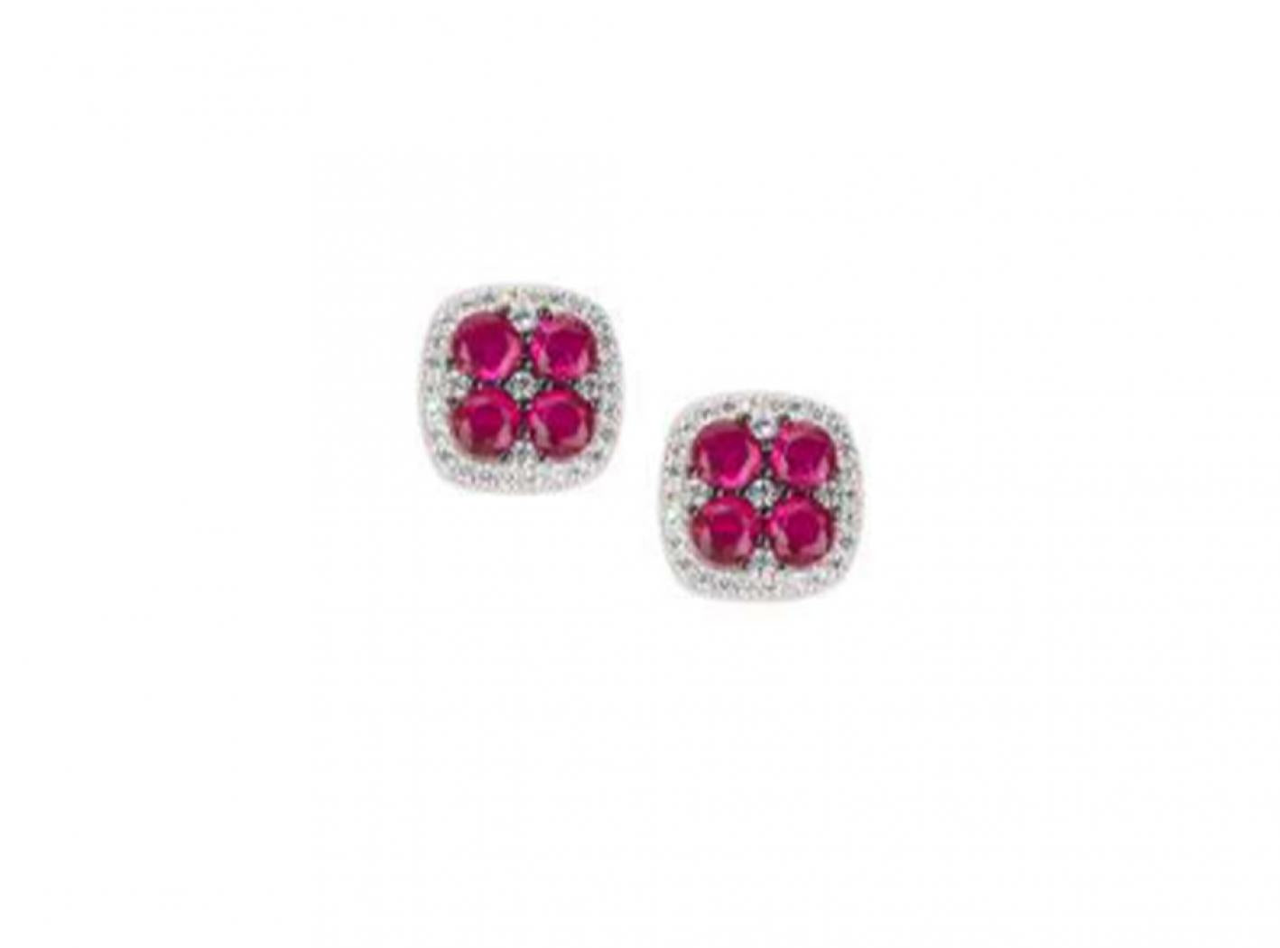 Orecchini da donna in argento 925 con cubic zirconia e zirconi rubino con chiusura a farfallina.