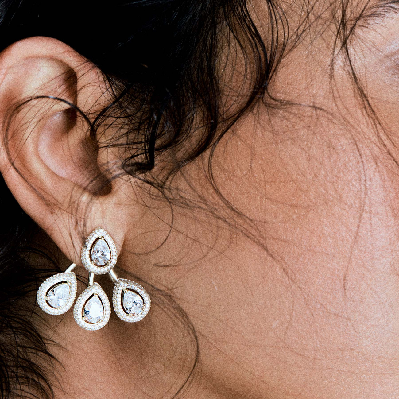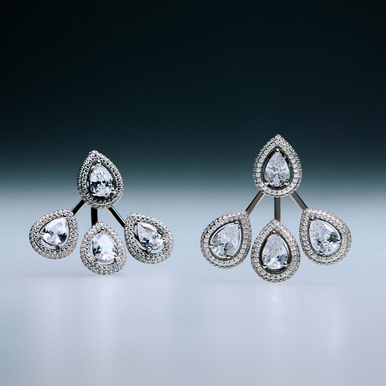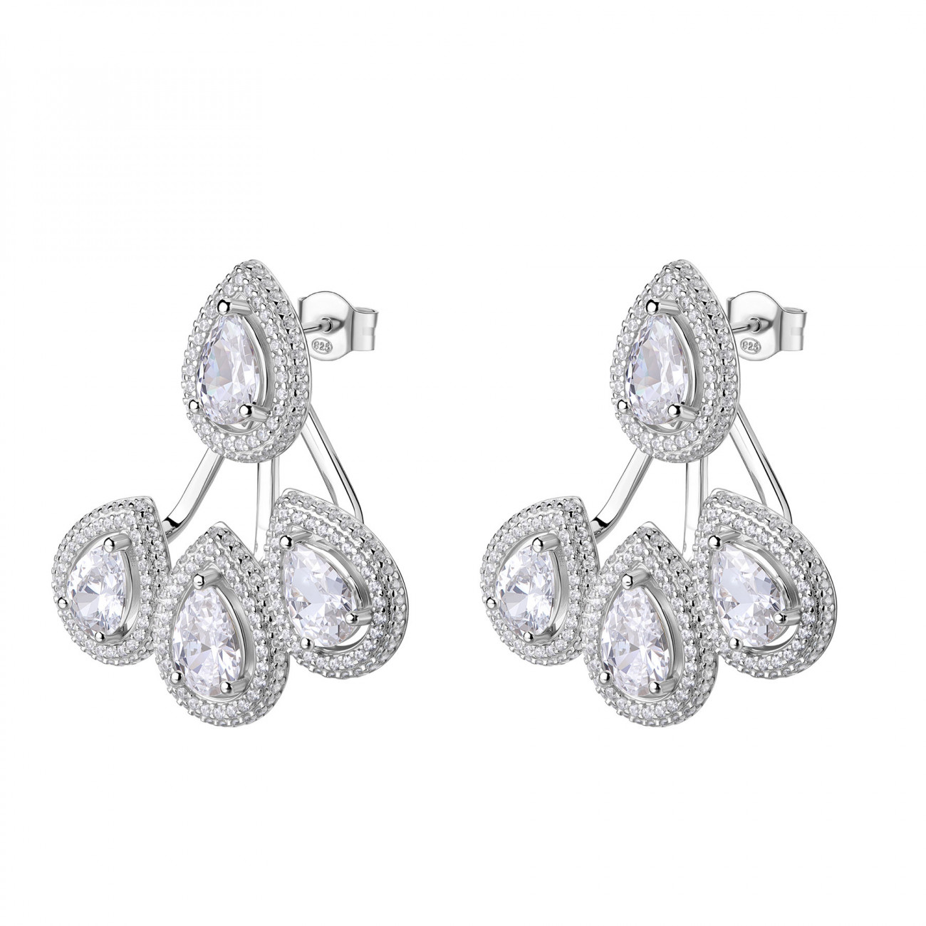 Orecchini pendenti in argento 925‰, 428 cubic zirconia bianchi