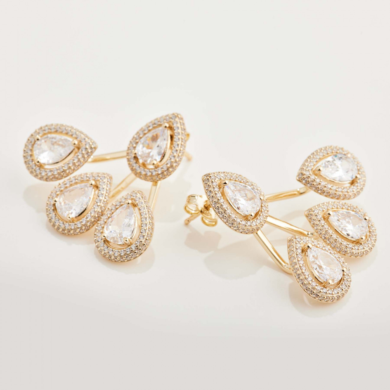 Orecchini pendenti in argento 925‰, placcatura oro giallo, 428 cubic zirconia bianchi