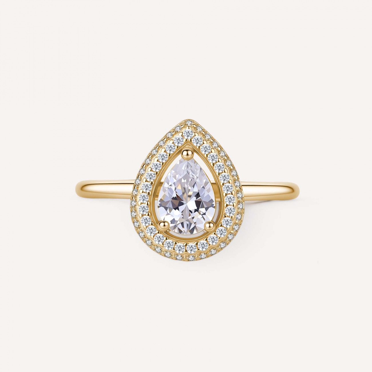 Anello in argento 925‰, placcatura oro giallo, 61 cubic zirconia bianchi, misura 14.