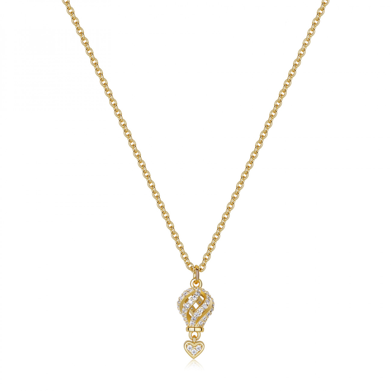 Collana corta in argento 925‰ con pendente a forma di mongolfiera, placcatura oro giallo, 60 cubic zirconia bianchi