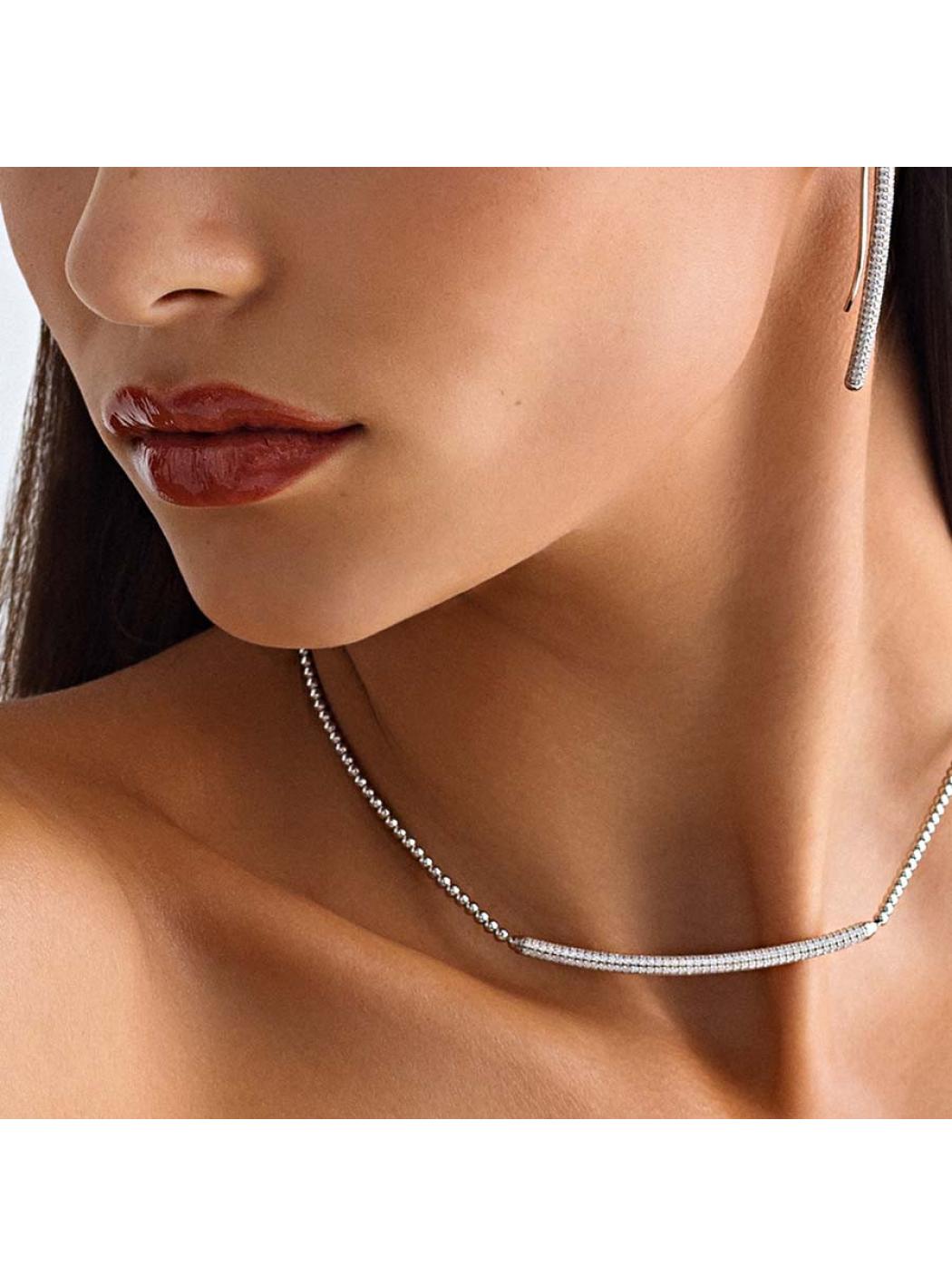 Collana corta in argento 925‰, 180 cubic zirconia bianchi.