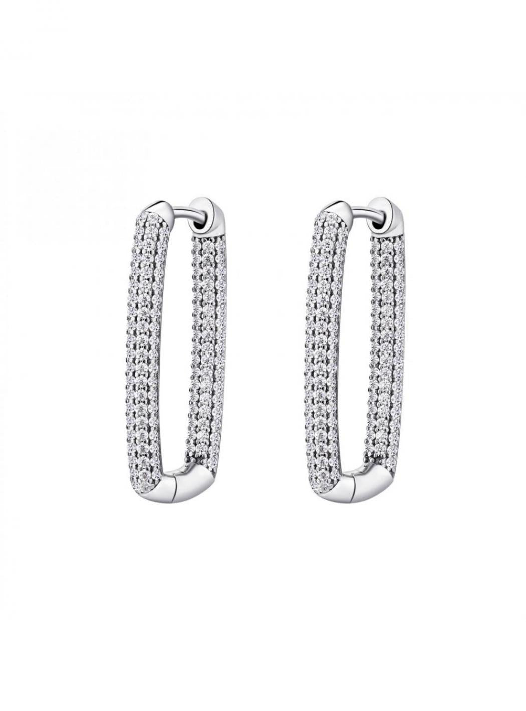 Orecchini rettangolari in argento 925‰, 300 cubic zirconia bianchi.