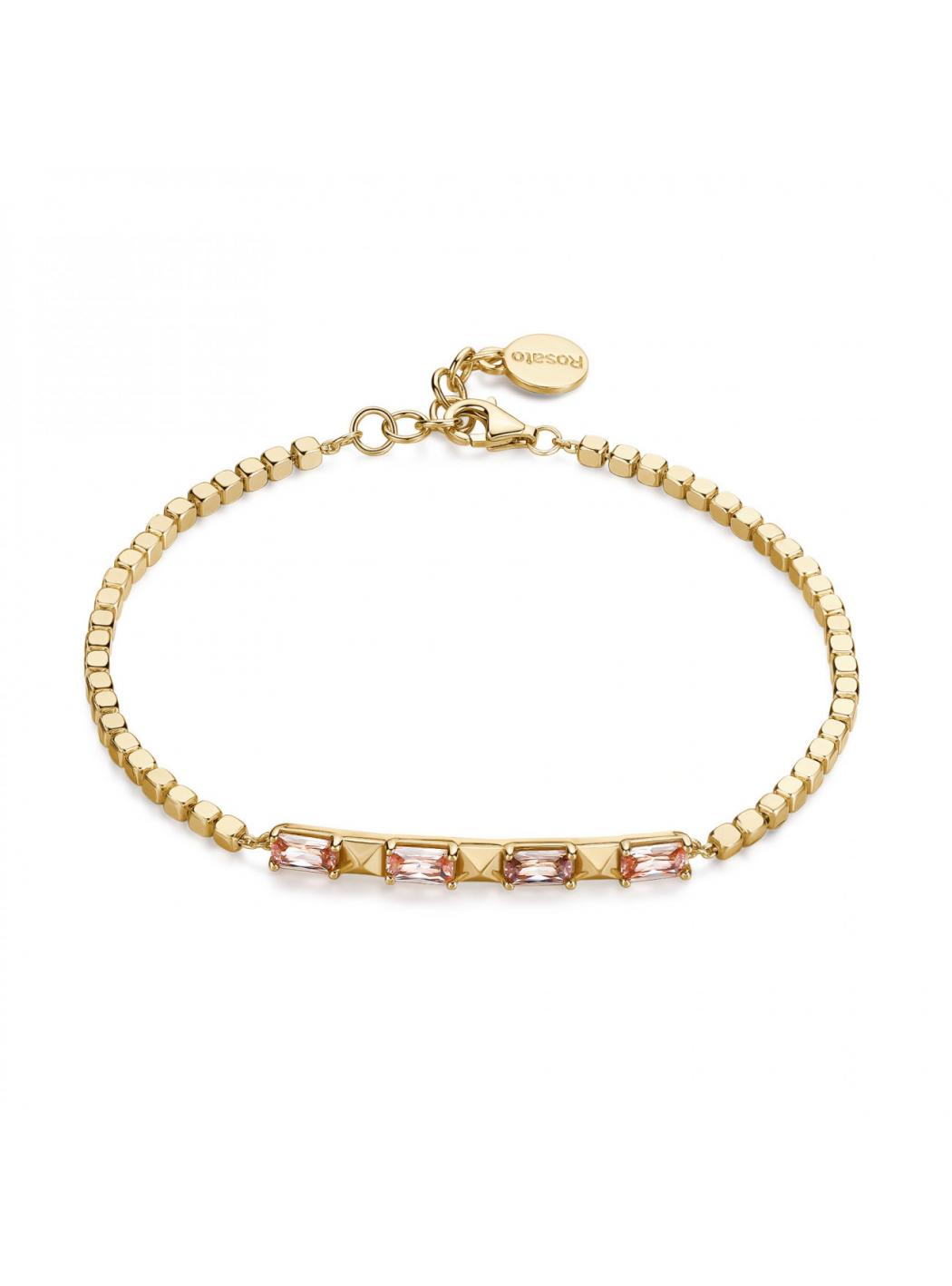 Bracciale morbido in argento 925‰, placcatura oro giallo, 4 cubic zirconia champagne. Misura 190mm.