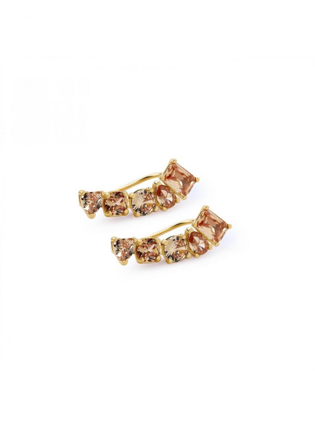Orecchini lobo in argento 925‰, placcatura oro giallo, 10 cubic zirconia champagne.