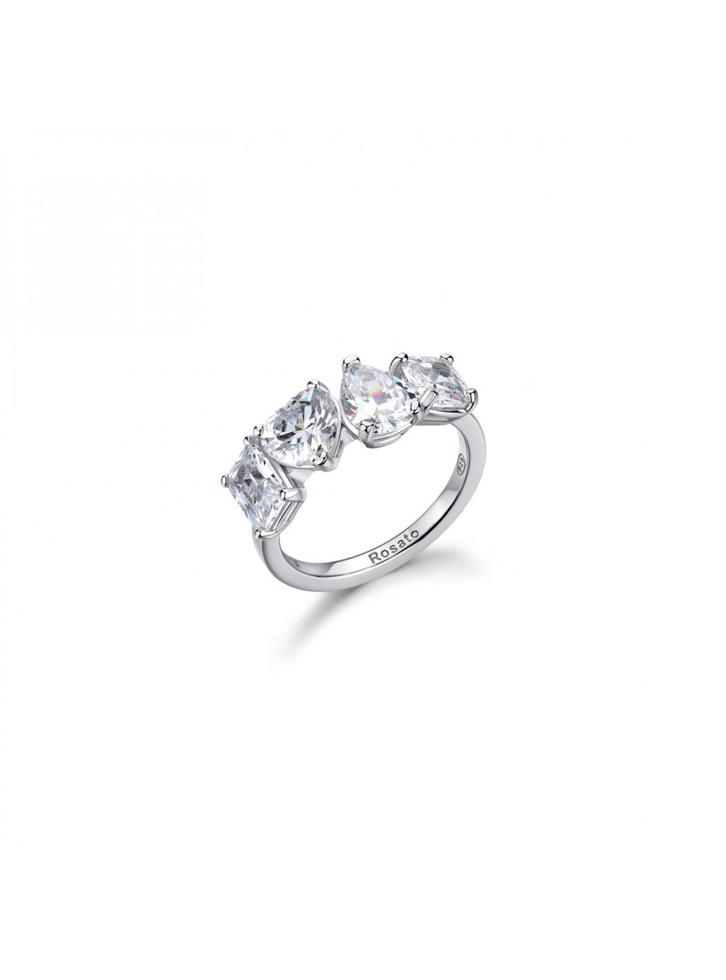 Anello in argento 925‰, 4 cubic zirconia bianchi. Misura: 14.