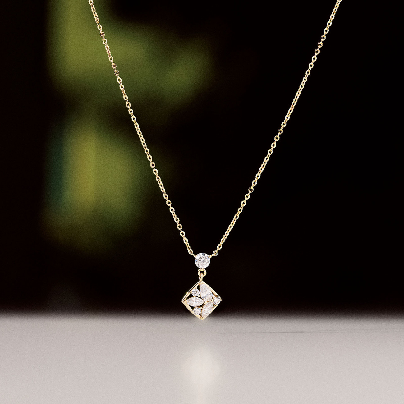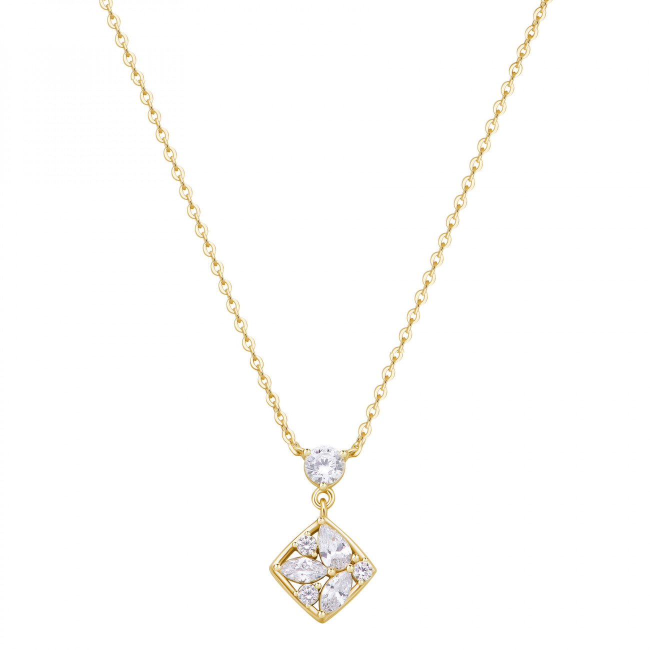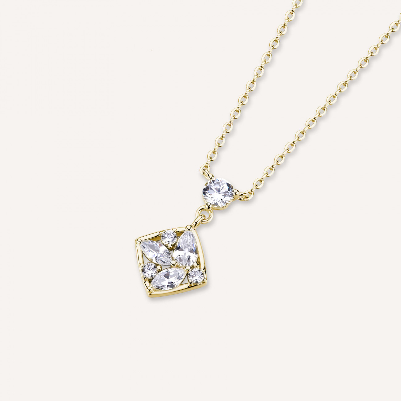 Collana corta in argento 925‰, placcatura oro giallo, 7 cubic zirconia bianchi