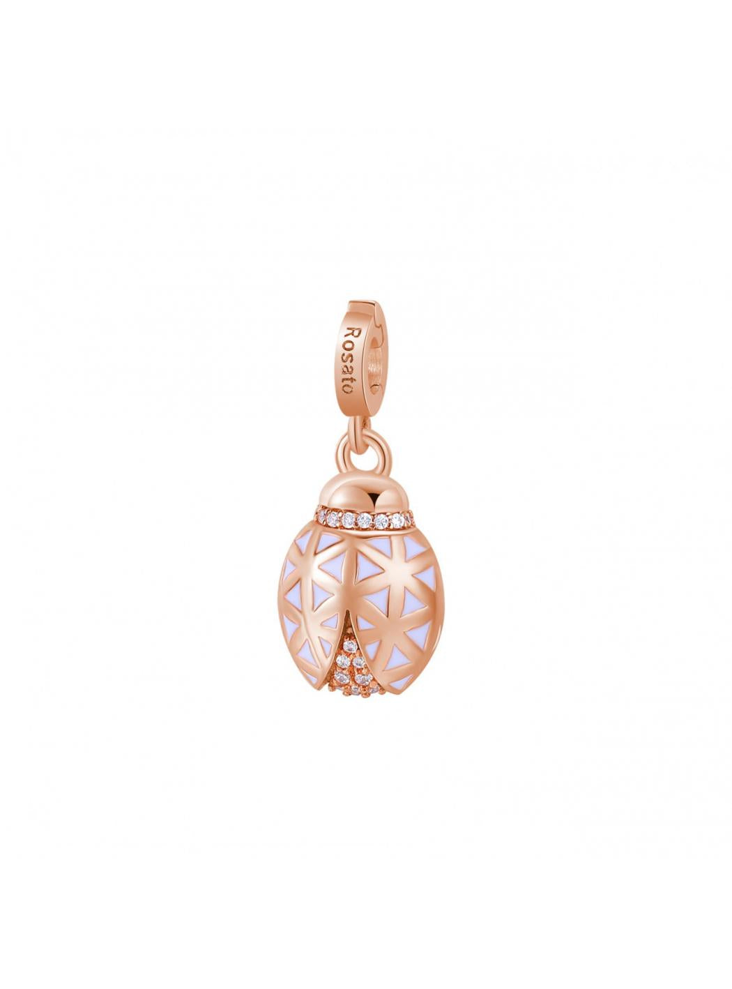 Ciondolo Charm Coccinella in edizione limitata della collezione Pink is Good di Rosato Gioielli, un progetto in collaborazione con la fondazione Umberto Veronesi dedicato al sostegno della ricerca scientifica sui tumori femminili e alla promozione della prevenzione di queste patologie. E’ realizzato in argento 925/000 con galvanica oro rosa, 16 zirconi bianchi e smalto bianco. Anello di aggancio con apertura a scomparsa. Il ciondolo è compatibile con tutti i supporti della collezione Stories di Rosato.Significato: GRAZIA.