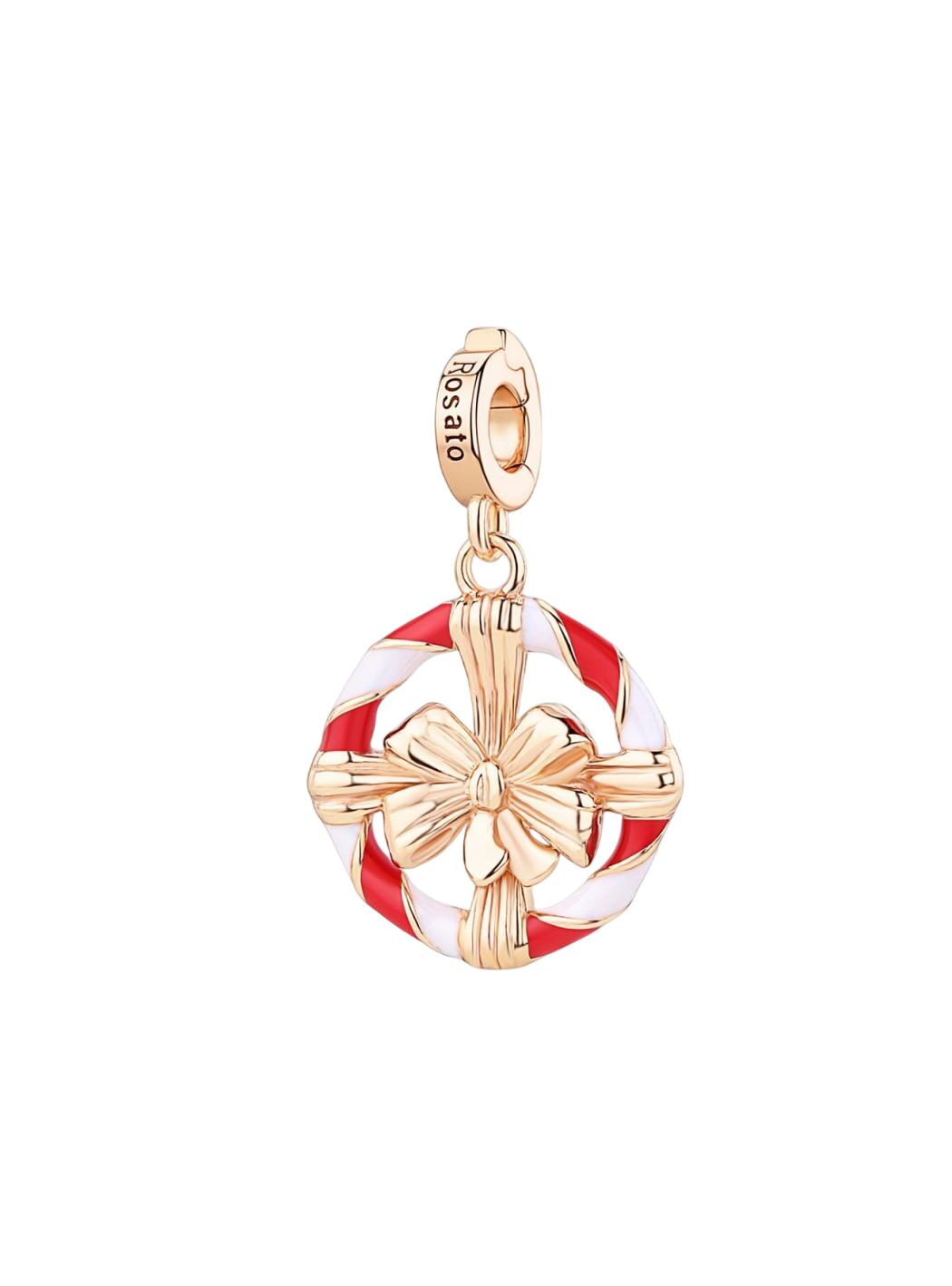 Charm in argento 925‰ a forma di ghirlanda natalizia, placcatura oro rosa, smalti colorati - Christmas Limited Edition