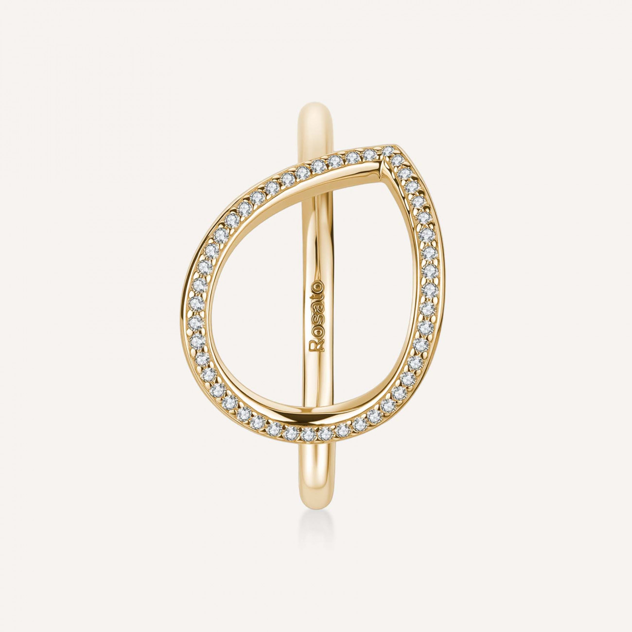 Anello in argento 925‰, placcatura oro giallo, 47 cubic zirconia bianchi