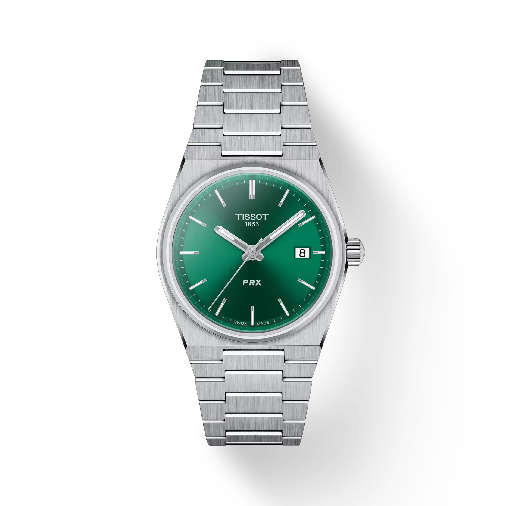 Se stai cercando un orologio sottile e piccolo con anima autentica anni '70, non andare oltre... Tissot PRX. I modelli da 35 mm catturano perfettamente l'essenza e le dimensioni esatte dell'originale del 1978, su cui si basa il design retrò del PRX. Il suo aspetto evocativo lo rende un elemento essenziale senza compromessi per tutti gli appassionati di design.Informazioni sull'orologioSKUT1372101108100CollezioneT-ClassicPeso (g)97,00Garanzia2 anni garanziaPaese di produzioneCHCassa e vetroLunghezza34,60Larghezza35,00Spessore9,60Anse11.00ImpermeabilitàImpermeabile fino a 10 bar (100 metri/330 piedi)Forma della cassaA forma tonneauMateriale della cassaCassa in acciaio inossidabile 316LVetroVetro zaffiro antigraffioMovimentoEnergiaQuartz EOLMovimentoSvizzero, al quarzoBatteriaBatteria tipo Renata 371FunzioniEOL (indicatore fine carica batteria)Calibro10 1/2'''Calibro Diametro (mm)23.3Certificato COSCNoQuadranteColore del quadranteVerdeIndiciIndiciMateriale luminescente sulle lancetteSuper-LumiNova ®CinturinoRiferimento del cinturino/catenaT605047605Dettagli del cinturinoAcciaio inossidabileColore cinturinoGrigioFibbiaChiusura a farfalla con pulsanti, Bracciale intercambiabile a sgancio rapidoopzioni braccialeBraccialetto intercambiabile a sgancio rapidoreferenza magliaT613047613