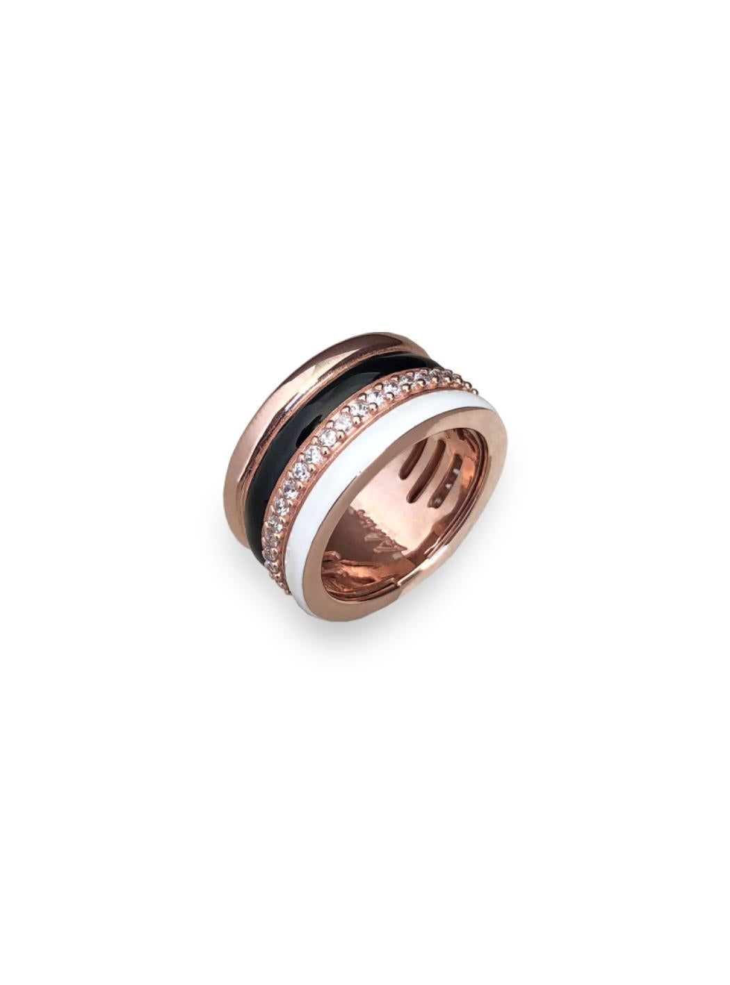 Anello modello fascione in Argento 925 con smalto bicolore bianco e nero e zirconi bianchi S (11-12-13)M (14-15-16)L (18-19-20)