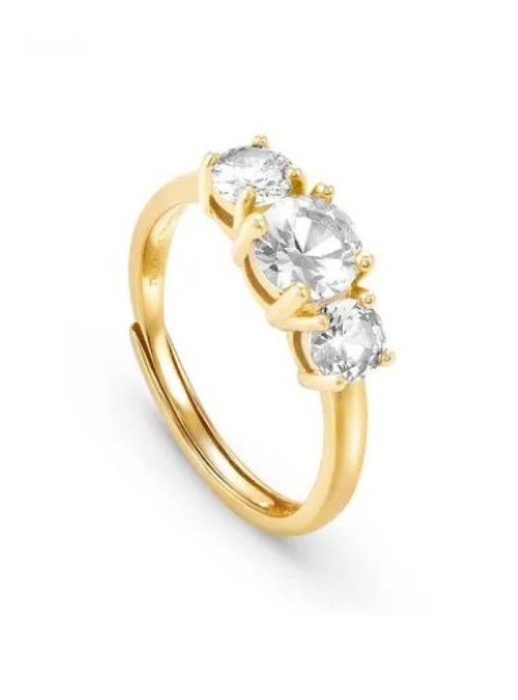 Anello in Argento 925 con 3 Cubic Zirconia bianchi. Rivestimento superficiale in Oro Giallo 999 realizzato mediante bagno galvanico. Anello con Misura regolabile. Misura pietre: 1,45x0,62 cm.