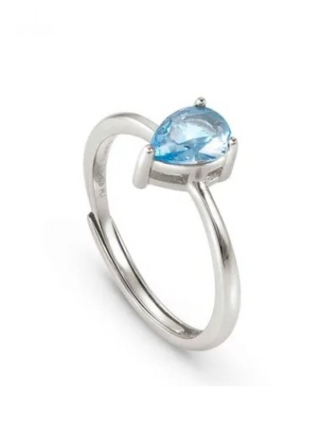 Anello in Argento 925 con Cubic Zirconia a forma di goccia celeste. Rivestimento superficiale in rodio bianco realizzato mediante bagno galvanico. Anello misura regolabile. Misura pietra: 0,5x0,8cm.