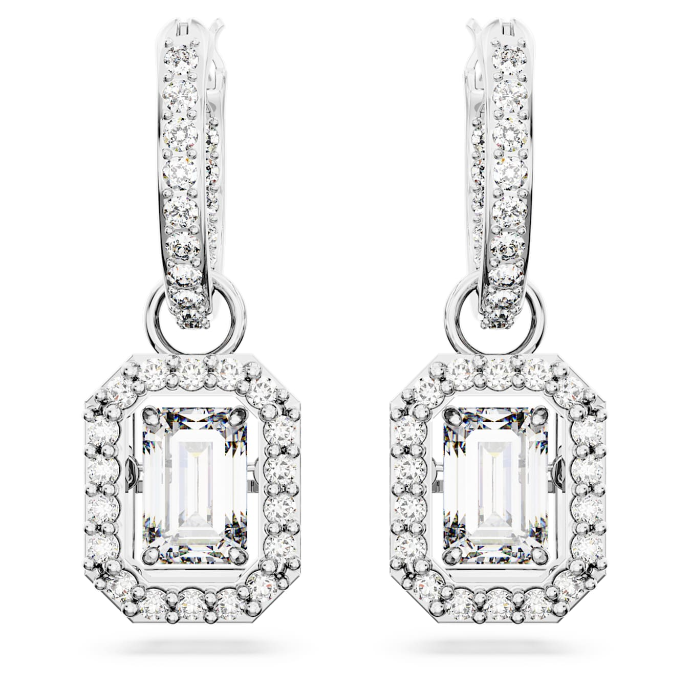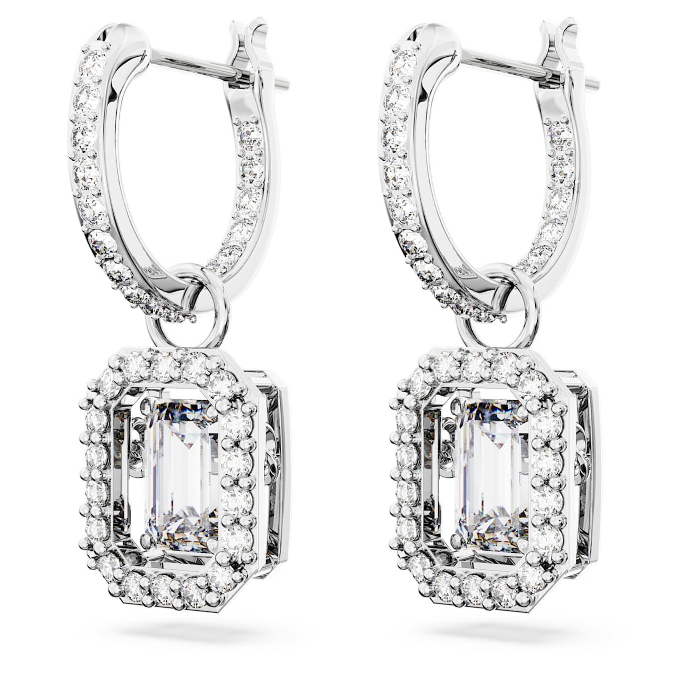 Impreziosisci il tuo guardaroba quotidiano con questi squisiti orecchini pendenti della linea Una. In questo paio di orecchini placcati rodio, le dancing stone dal taglio ottagonale sono incorniciate elegantemente da cristalli pavé. Grazie alla versatile colorazione trasparente, sono perfetti da indossare da soli o insieme ad altri variopinti gioielli, per un ricercato tocco finale.