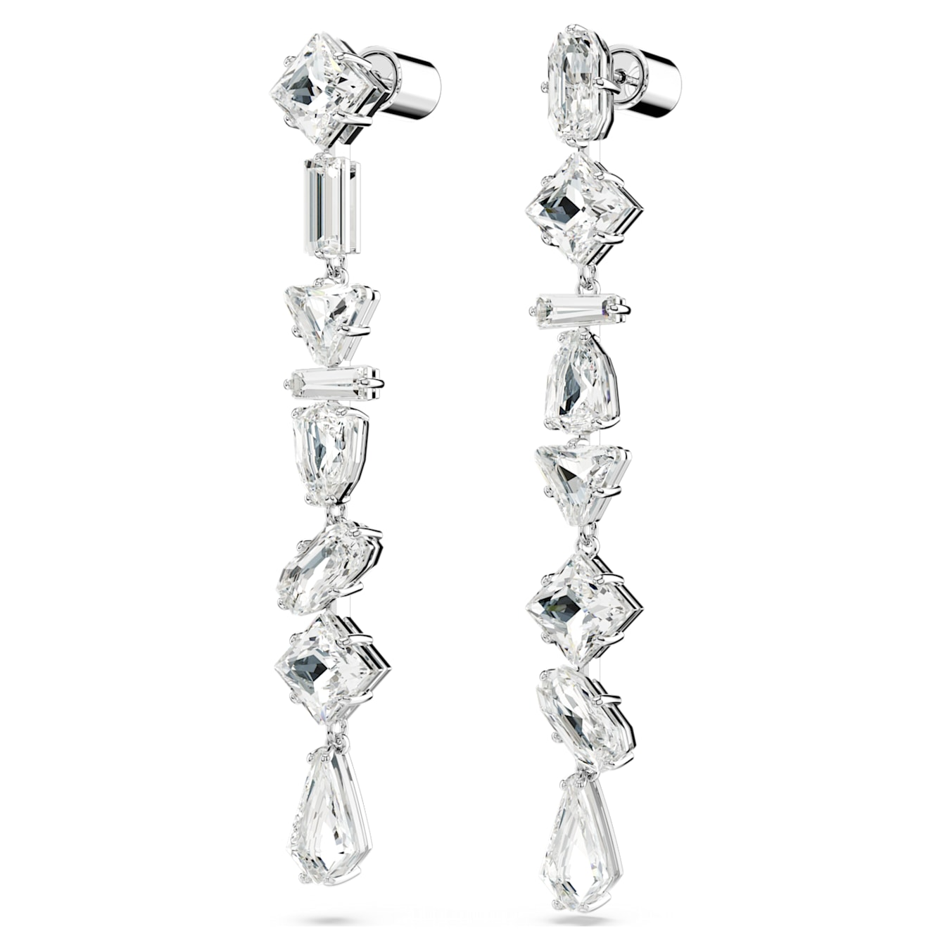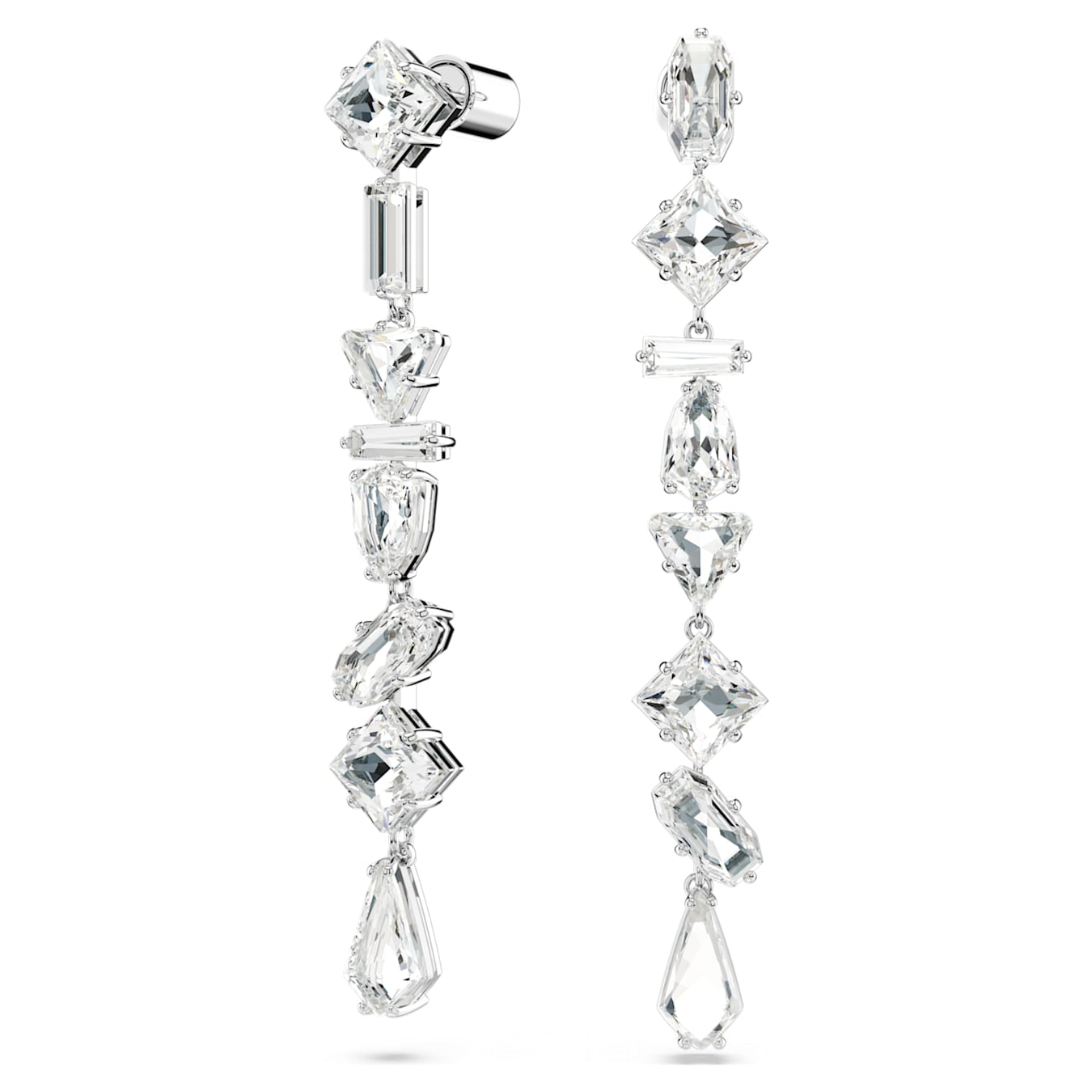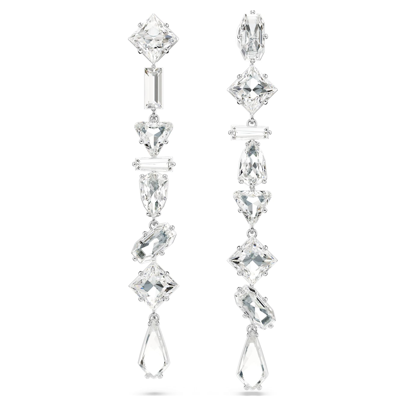 Questi splendenti orecchini Mesmera sono stati pensati per uno stile stravagante. Lo sfavillante design di ogni gioiello sfoggia una cascata di audaci cristalli con montatura a griffe, incastonati in una struttura placcata rodio e ogni pietra è realizzata in una forma diversa. Un meraviglioso mix di sfaccettature che catturano la luce fa di questo gioiello un regalo elegante per una persona cara.