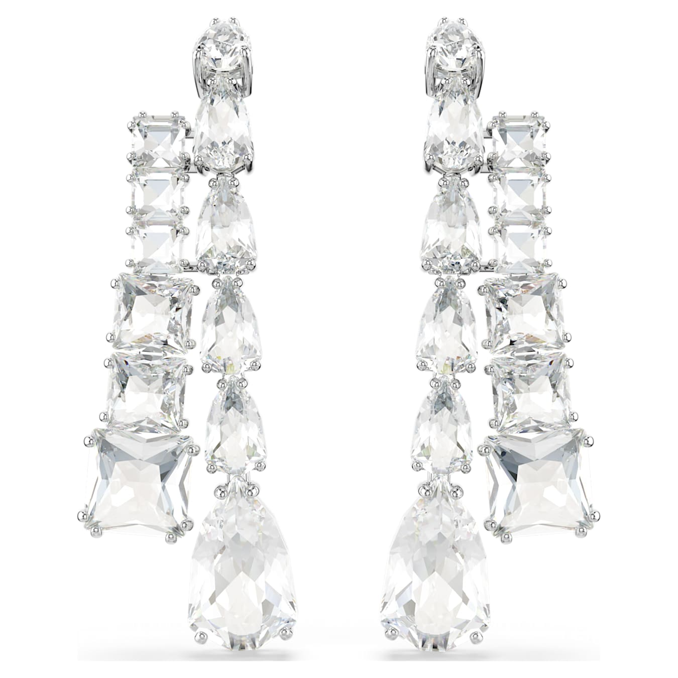 Potenzia la tua luce naturale con questi orecchini Matrix che ricadono a cascata. Ciascun orecchino chandelier presenta un doppio filo di cristalli Cry con tagli Pear e Square di varie misure, che aggiungono inaspettate dimensioni alla silhouette. Una moderna interpretazione dei classici orecchini a goccia che saprà regalare un immediato tocco di glamour.