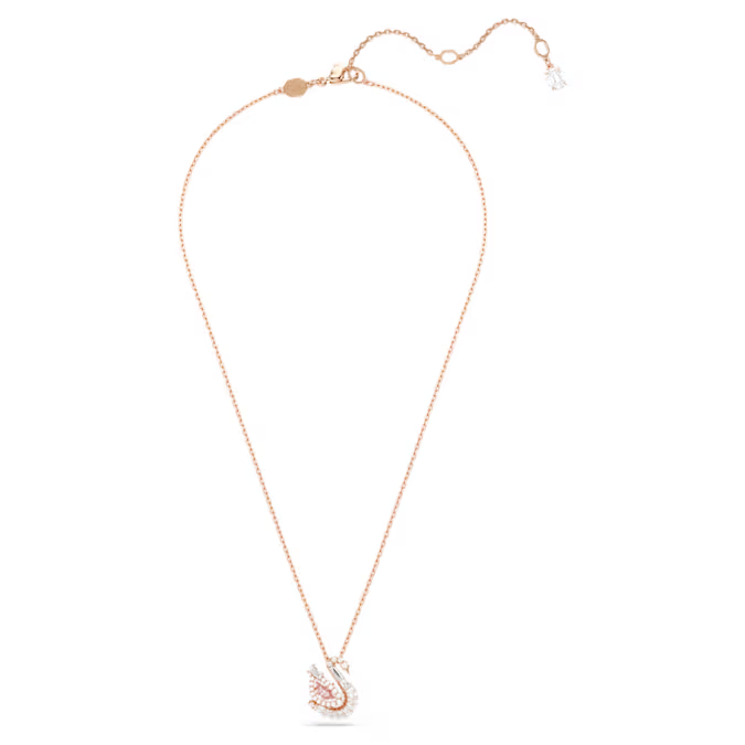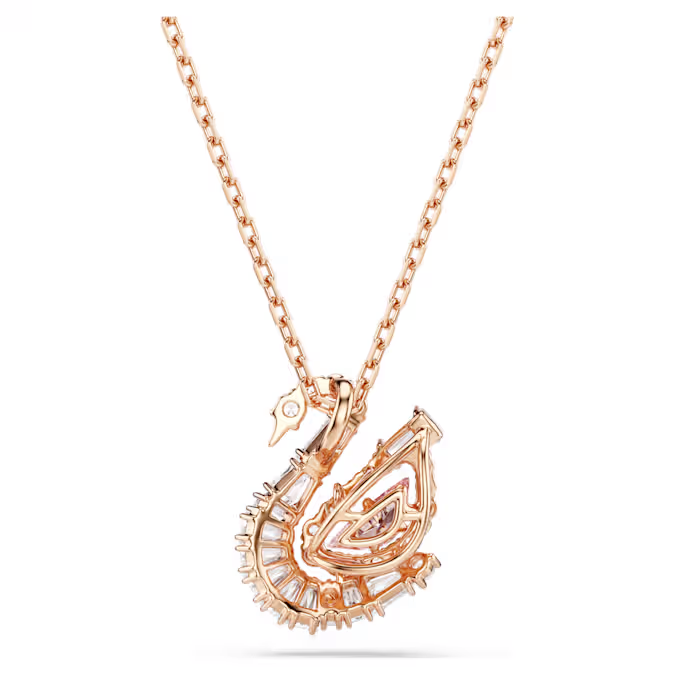 Questo pendente trasmette il movimento aggraziato dell’iconico cigno Swarovski. Sospeso a una catena placcata in tonalità oro rosa, il motivo centrale rivela un’elegante silhouette, impreziosita da Swarovski Zirconia trasparenti e da una dancing stone rosa con taglio a forma di silhouette di cigno. Questo radioso dettaglio crea un moto perpetuo di colore e luce, e farà brillare il tuo stile in ogni momento.