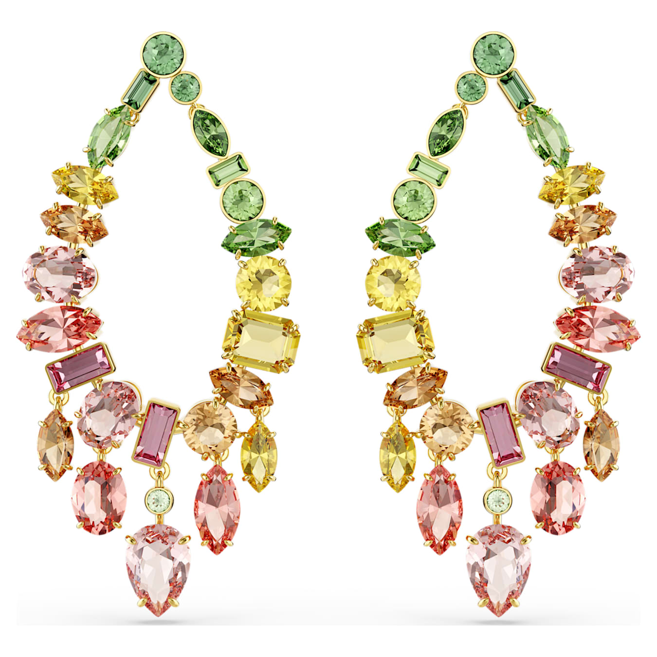 Gli orecchini chandelier sono al tempo stesso intensi e giocosi. Lo stile bohémien combina una varietà di cristalli di diverse forme e colori, tutti disposti in un’affascinante sfumatura e formazione. Abbinali al pendente coordinato per infondere di ulteriore gioia il tuo stile.