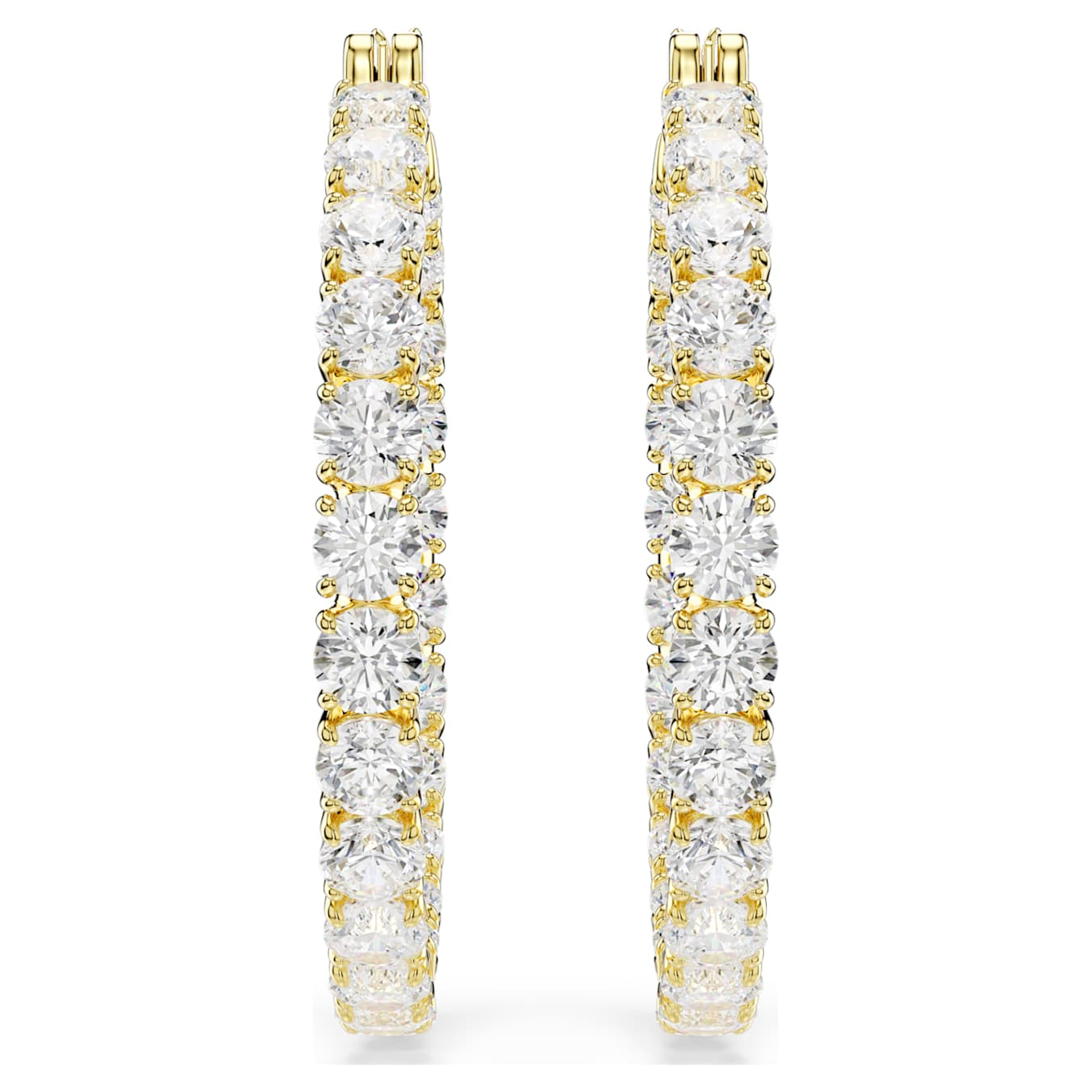 Gli orecchini a cerchio Matrix dalla forma perfetta sono definiti dal look intramontabile dei cristalli taglio Round e dal metallo placcato in tonalità oro. È una combinazione sublime, essenziale per qualsiasi portagioie. Scegli gli orecchini a cerchio quando desideri rivestirti di pura radiosità.