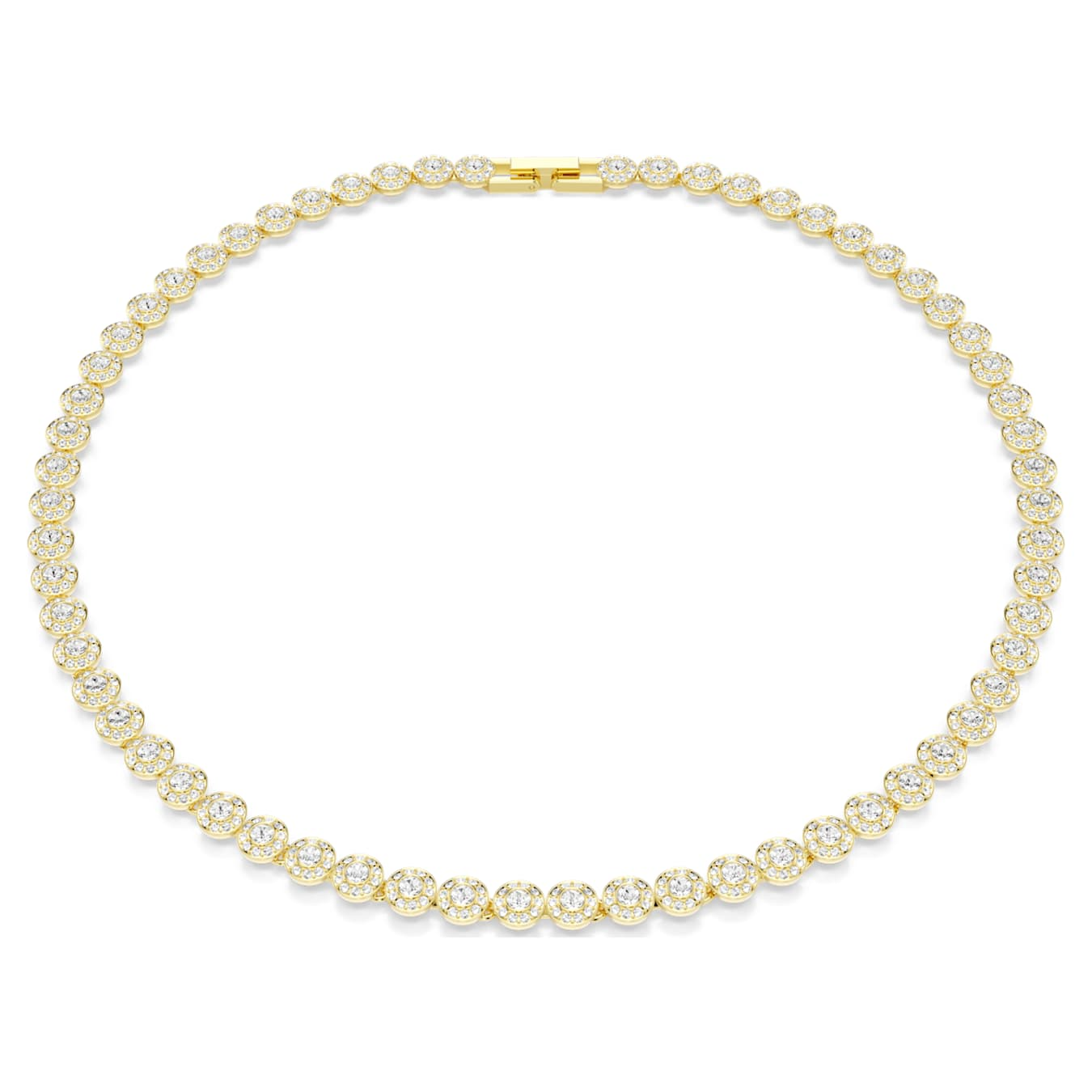 Catturando un'allure di intramontabile sofisticatezza, la radiosa collana Una è una delle silhouette più amate di Swarovski. Il design placcato in tonalità oro presenta una cornice completa di grandi cristalli taglio Round, ognuno incorniciato da un alone di pavé di cristalli Cry. Il fermaglio di sicurezza offre una chiusura impeccabile, mentre l'extender aggiuntivo consente di regolare il gioiello sia per il comfort che per la lunghezza. Un modo perfetto per accentuare il glamour nei tuoi look da giorno e da sera.