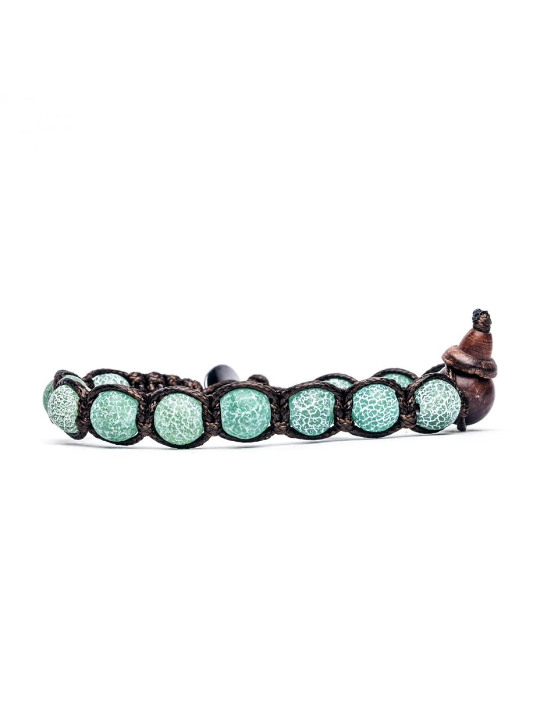 L'Agata è una pietra presente in natura in vari colori. In questo caso nella variante verde identifica il colore della natura, degli alberi e delle piante.Riassume le qualità di equilibrio e di armonia, ma anche di vigore giovanile e di azione. Il Tamashii® in agata verde trasforma la gelosia in saggezza di realizzazione.Bracciale unisex originale Tibetano Tamashii® realizzato con pietre naturali di Agata verde con trattamento "Air Slacked" e cordoncino marrone.L’Air slacked è un particolare trattamento superficiale applicato su alcune delle più comuni pietre utilizzate per i bracciali Tamashii. Il trattamento consente di creare contasti cromatici e particolari texture che arricchiscono e vivacizzano le pietre. Il trattamento è totalmente naturale e non altera la durabilità delle pietre.Misura pietre: 8 mmTaglia unica: il bracciale è predisposto per adattarsi a qualsiasi polso grazie alle asole già presenti (dove verrà infilato il bottone), una volta scelta la misura si può tagliere il cordoncino.Realizzati in Tibet, i bracciali sono benedetti da monaci buddisti.