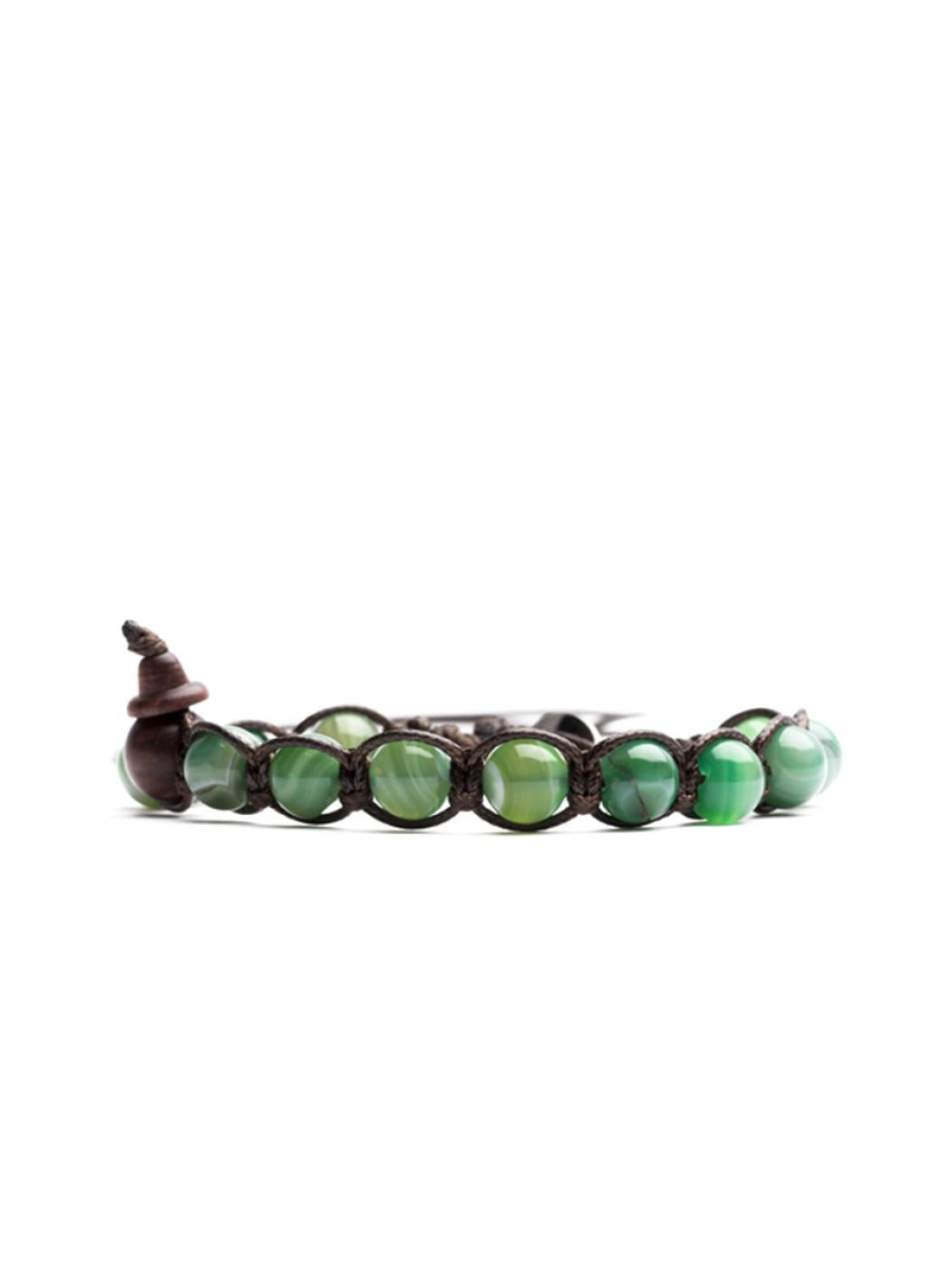 L’Agata è una pietra presente in natura in vari colori tra cui il verde che simboleggia equilibrio e armonia, ma anche vigore giovanile e azione.Il Tamashii® in Agata verde trasforma la gelosia in saggezza di realizzazione.Le striature, pur conferendo unicità ad ogni pietra, sono considerate metafora per sottolineare l’uguaglianza di base di tutti gli esseri viventi.Bracciale unisex originale Tibetano Tamashii® realizzato con pietra naturale Agata verde striata e cordoncino marrone.Misura pietre: 8 mmTaglia unica: il bracciale è predisposto per adattarsi a qualsiasi polso grazie alle asole già presenti (dove verrà infilato il bottone), una volta scelta la misura si può tagliere il cordoncino.Realizzato in Tibet e i bracciali sono benedetti da monaci buddisti.