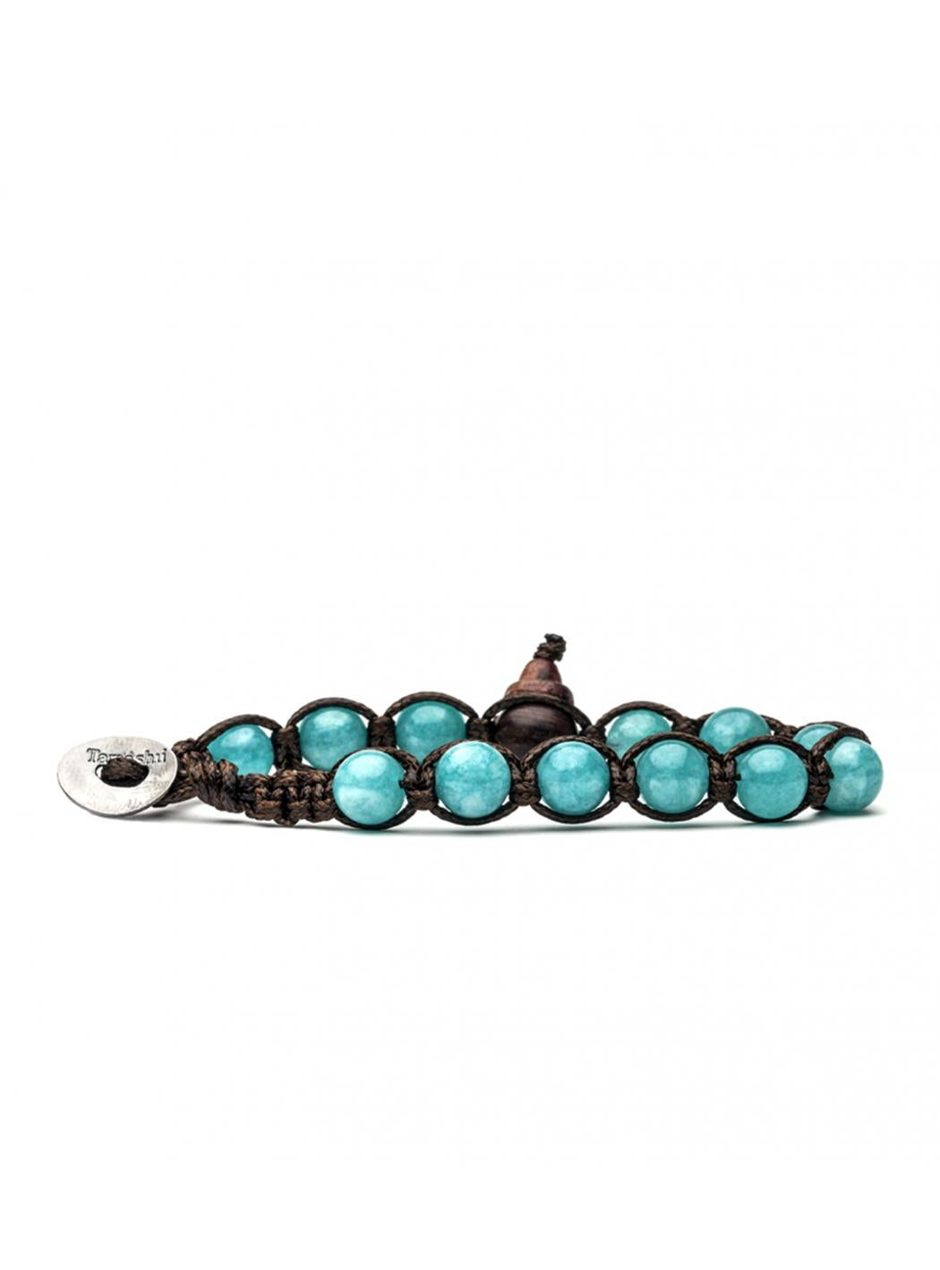 La Giada è stata considerata per millenni un portafortuna, da essa infatti venivano ricavati gli amuleti. Confucio (551-479 a.C.) afferma che questa pietra possiede ed infonde 11 virtù tra cui benevolenza, fedeltà, educazione e sincerità.Tra le numerose proprietà di questa pietra, nella variante verde acqua, ci sono quella legata alla protezione di bambini e anziani durante i viaggi e quella di sostenere gli amori, per così dire, maturi.Bracciale unisex originale Tibetano Tamashii® realizzato con pietra naturale Giada verde acqua e cordoncino marrone.Misura pietre: 8 mmTaglia unica: il bracciale è predisposto per adattarsi a qualsiasi polso grazie alle asole già presenti (dove verrà infilato il bottone), una volta scelta la misura si può tagliere il cordoncino.