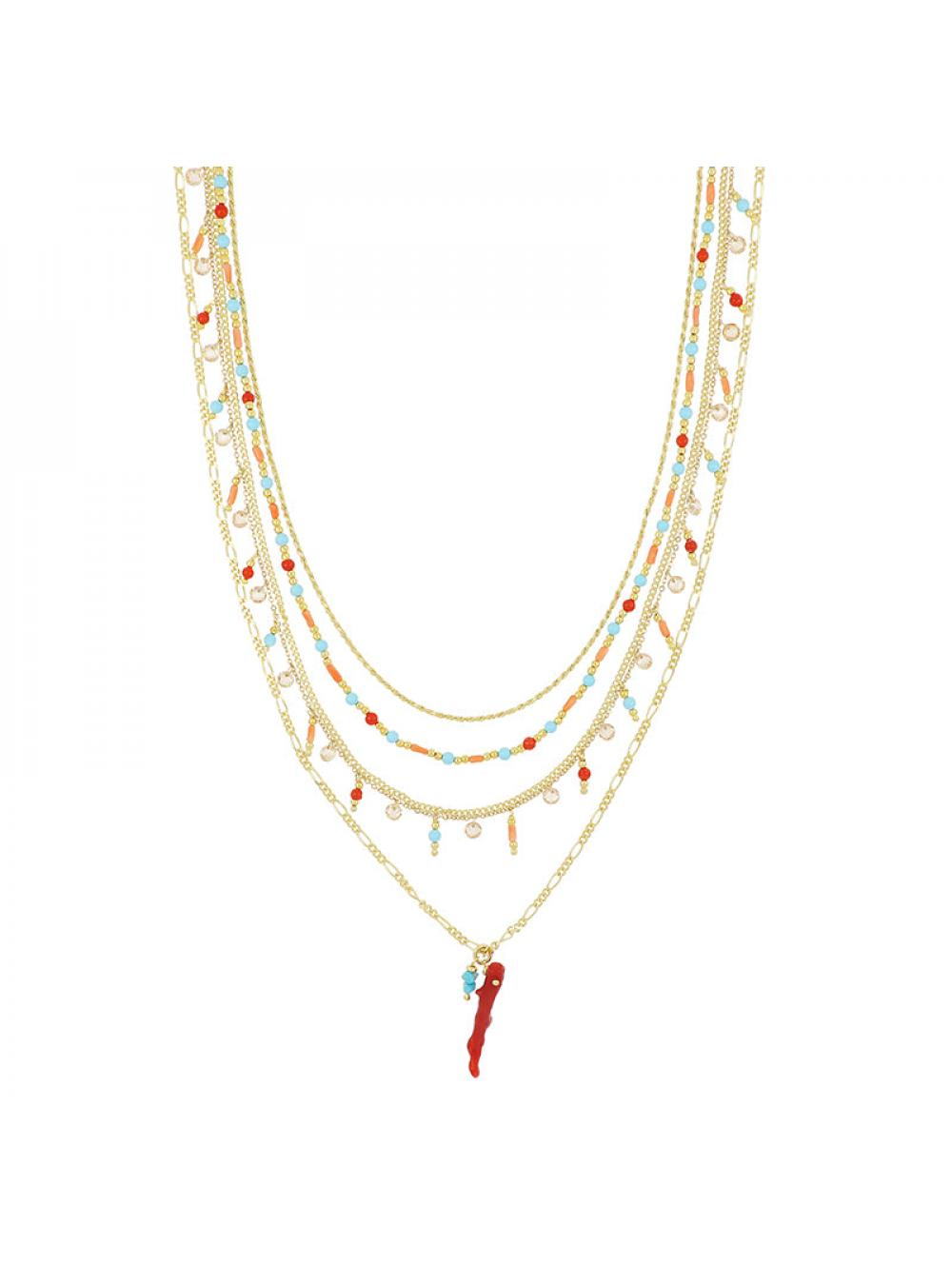 Collana Nivy Natalie in argento 925 con corallo, corallo rosa, turchese, pasta di turchese e zirconi.Colore: oro, rosso, arancione, turchese.Chiusura: moschettone a molla.