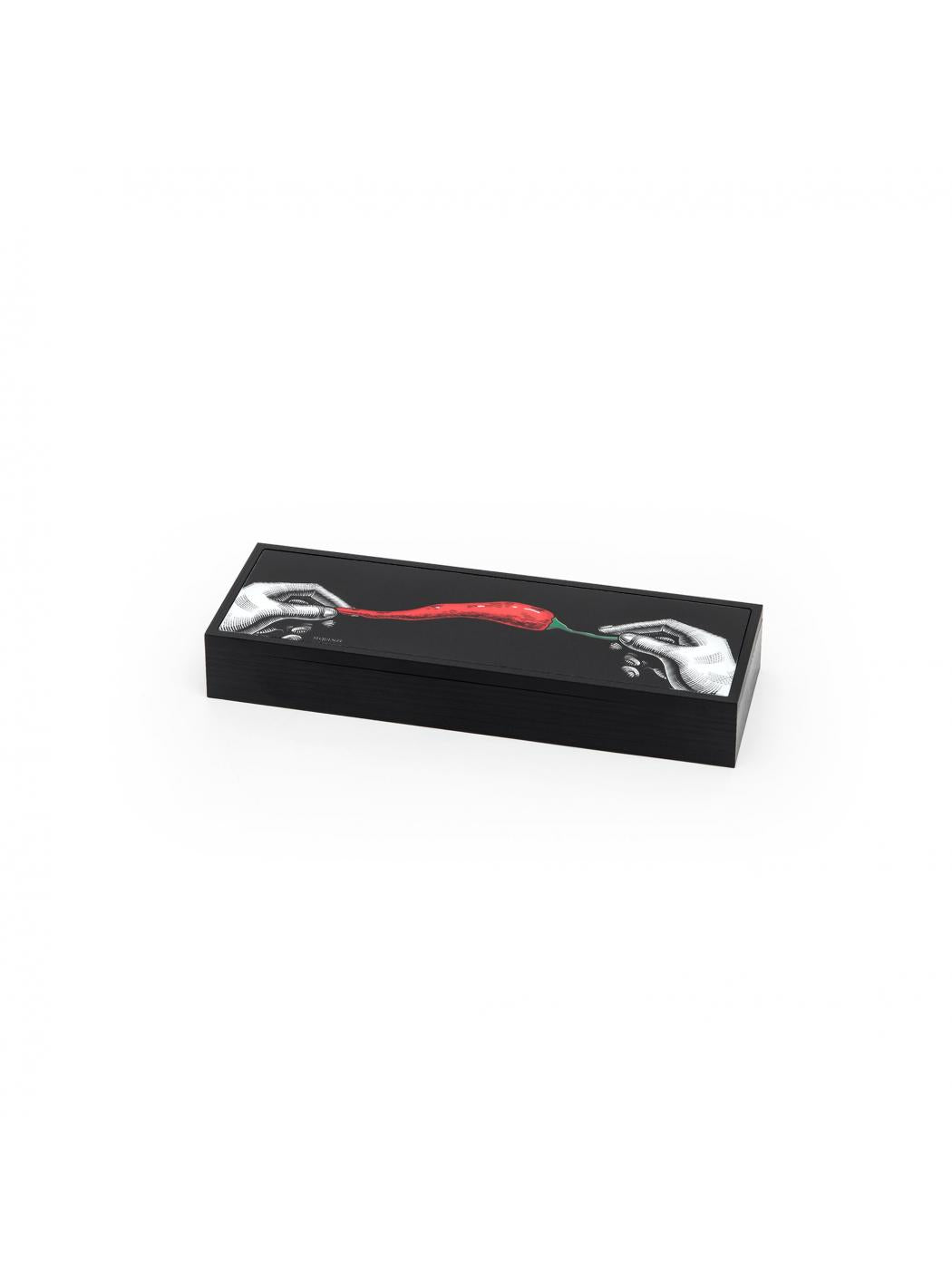 Scatola The Spicy Riot by SequenzeMateriali: Vetro e LegnoMisure: 9x27 cmLa scatola della linea "The Spicy Riot" di Sequenze rivisita, in chiave moderna, l'icona portafortuna per eccellenza.