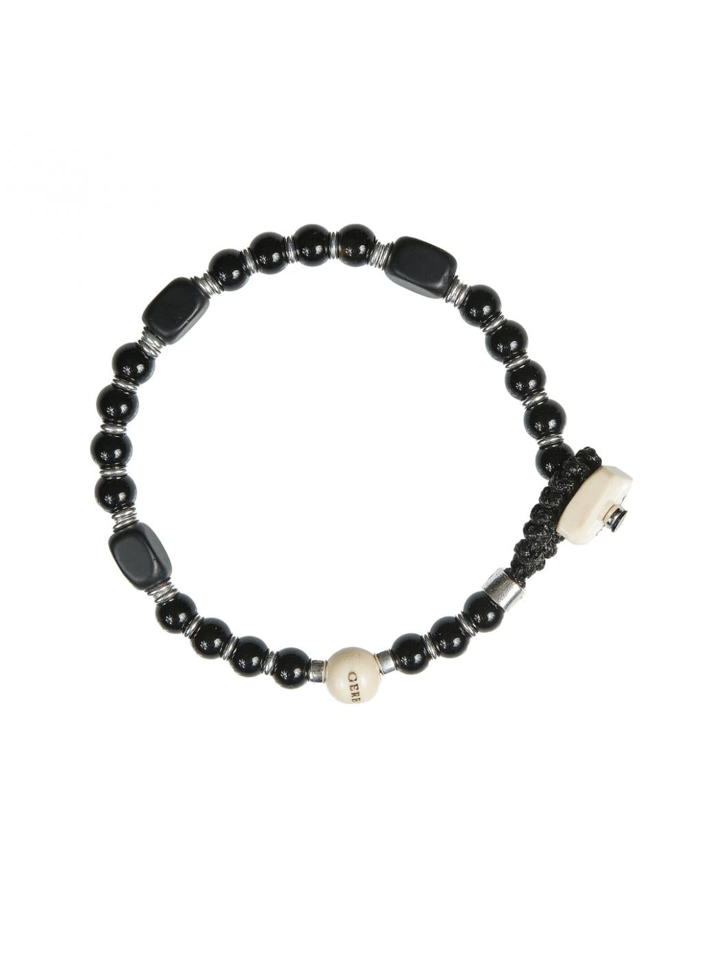 Il bracciale Gerba Strange Stone 03 si distingue per il suo design particolare, composto da pietra agata nera lucida e sassi in pietra agata nera opaca, pallina Gerba e bottone in osso, e componenti in Argento 925.I componenti in Argento sono anallergici con il valore inciso come prova di autenticità.